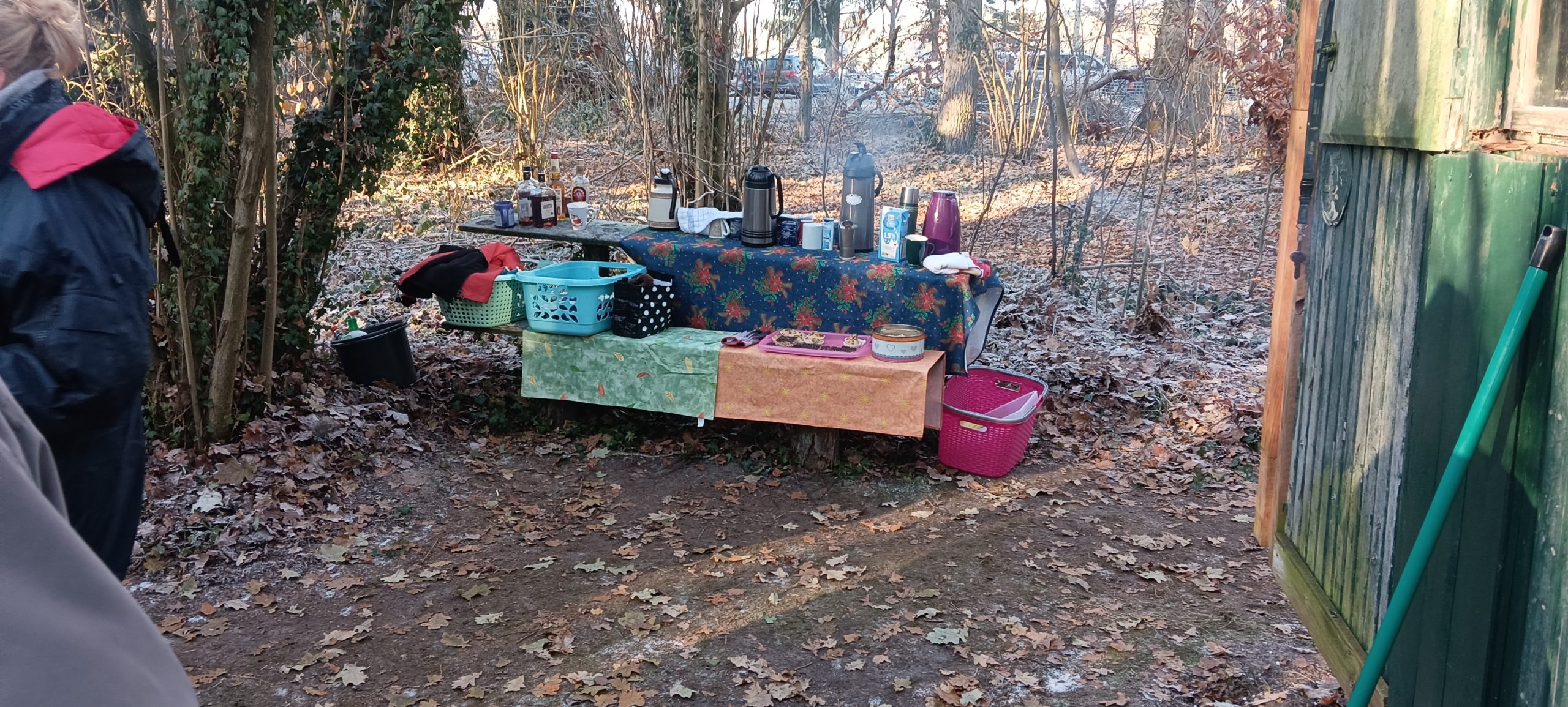 Heute haben wir für unser Gemeinschaftshaus einen Tannenbaum bei leckerem Glühwein geschlagen und abgeholt.
